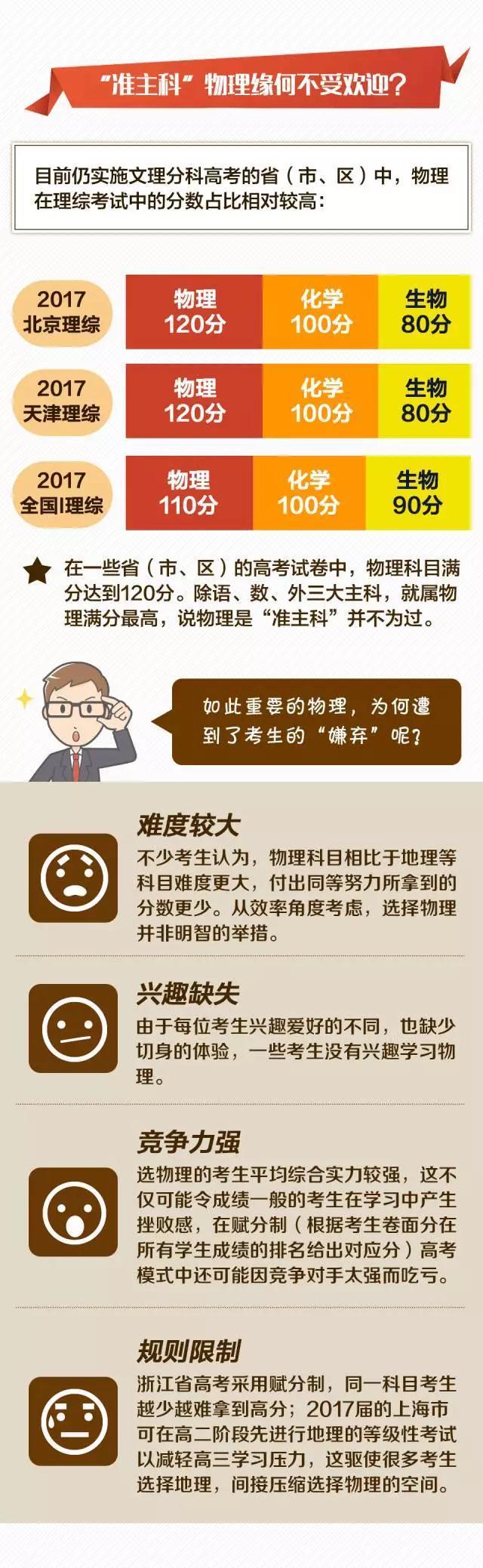 誠然,物理科目具有一定的難度,或許也不如地理等科目更具學習效率,然而,學生若為了成績而放棄了最適合自己的選擇,對個人特長的發(fā)展亦是一種抑制。學生在選擇考試科目時,還應依據(jù)自己的優(yōu)勢與興趣,選出一個自己熱愛,又利于發(fā)揮的組合。