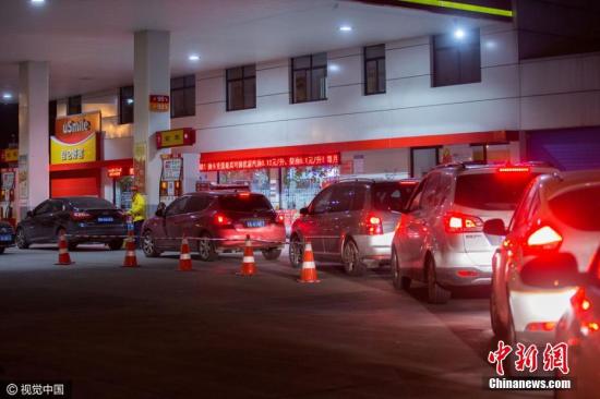 資料圖:2016年12月14日,杭州市眾多車主在加油站排隊加油。圖片來源:視覺中國