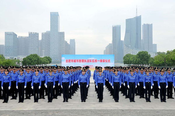 央廣網(wǎng)合肥9月29日消息(記者徐鵬 通訊員毛嫻靜)9月29日上午10時(shí),合肥市城市管理執(zhí)法人員換裝儀式在政務(wù)區(qū)市民廣場(chǎng)舉行,全市市、區(qū)、街三級(jí)3800余名城管系統(tǒng)執(zhí)法人員全部換裝完畢,這也標(biāo)志著合肥市城市管理綜合執(zhí)法深化體制改革進(jìn)入了新的階段。