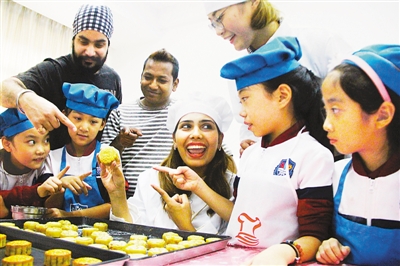 中秋節(jié)之際,河北唐山市豐潤(rùn)區(qū),來(lái)自英國(guó)、印度、孟加拉國(guó)的外教老師與當(dāng)?shù)氐暮⒆觽円黄鹬谱髟嘛,體驗(yàn)中華民族傳統(tǒng)文化。