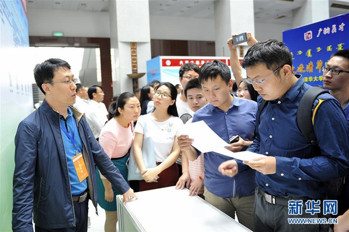 9月21日,高校的大學(xué)生在某招聘會(huì)現(xiàn)場(chǎng)查看資料。新華社記者 李欣 攝