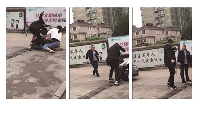 從監(jiān)控視頻中,揚子晚報記者看到,電動車還未停穩(wěn),黑衣男子便沖了上來,拿著尖刀直接往藍(lán)衣男子的腹部插去,連續(xù)刺了四五刀后,藍(lán)衣男子便隨著電瓶車倒地,一旁拉架的白衣女子也被帶倒,但黑衣男子還是拿刀亂刺,倒地的男子強打精神爬起來往遠(yuǎn)處逃,但是黑衣持刀男子緊隨其后,藍(lán)衣男子又被再一次帶倒。這時,駕駛私家車的女輔警立即下車,衣服還沒扣好便沖過去了。