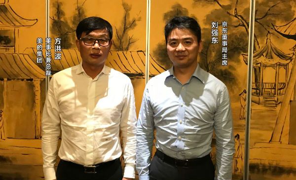 京東集團(tuán)董事局主席兼首席執(zhí)行官劉強(qiáng)東與美的集團(tuán)董事長兼總裁方洪波合影