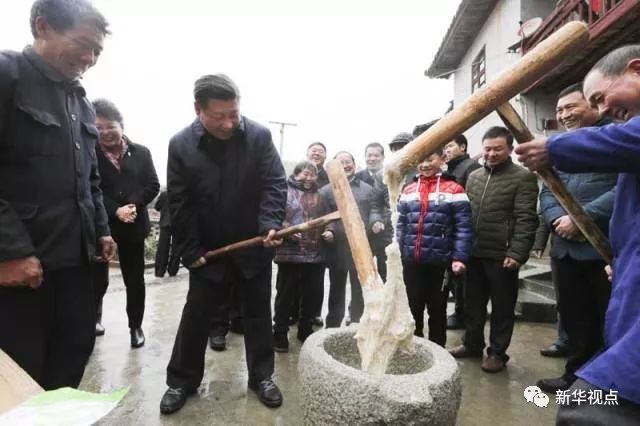 2016年2月,習(xí)近平總書記在井岡山市茅坪鄉(xiāng)神山村同村民一起打糍粑。他指出,扶貧、脫貧的措施和工作一定要精準(zhǔn),要因戶施策、因人施策,扶到點(diǎn)上、扶到根上。新華社記者蘭紅光攝