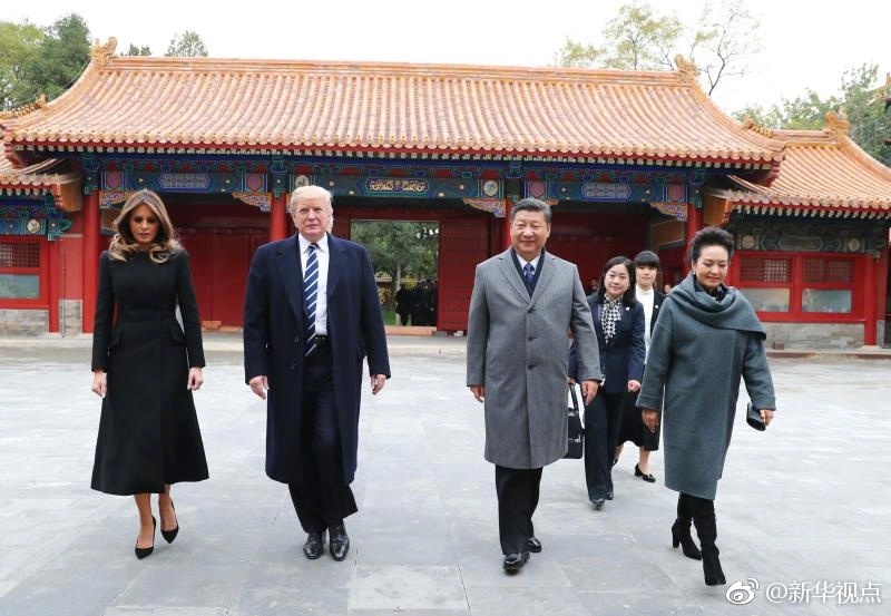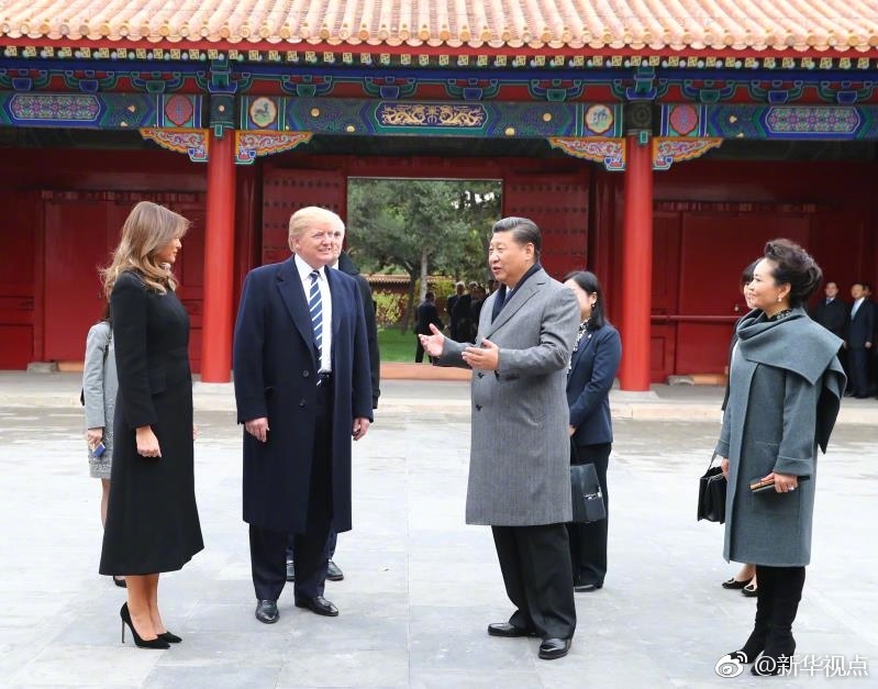 新華網(wǎng)北京11月8日電 國家主席習近平和夫人彭麗媛11月8日陪同來華進行國事訪問的美國總統(tǒng)特朗普和夫人梅拉尼婭參觀故宮博物院。(攝影:新華社記者蘭紅光、劉衛(wèi)兵、謝環(huán)馳 據(jù)新華社“新華視點”微博報道)