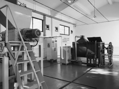 江寧谷里街道垃圾分揀中心的廚余垃圾處理設備,廚余垃圾經處理會制作成有機肥料。記者 江瑜 攝