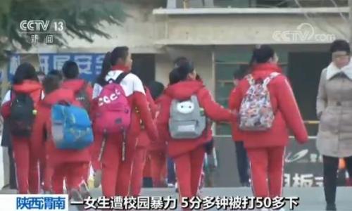 這段手機拍攝的視頻,總長5分35秒。視頻中,一名身穿校服的女孩,不斷被幾個人毆打,施暴者一邊對她扇耳光、用腳踢,一邊辱罵,言語中反復(fù)提到了錢。