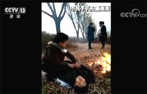萊蕪市民趙萍:就有人拿出火機(jī)點(diǎn)著火給他烤了一下火,有個(gè)車主拿過來一個(gè)毛毯給他蓋了一下。