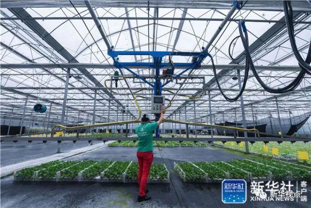 浙江省臺(tái)州市黃巖區(qū)綠沃川農(nóng)場的工作人員操作噴灌系統(tǒng)為蔬菜噴灑營養(yǎng)液(6月13日攝)。綠沃川農(nóng)場占地近300畝,公司立足于高科技農(nóng)業(yè)種植,引進(jìn)荷蘭水培蔬菜技術(shù)和空中草莓栽培技術(shù),集合了自動(dòng)化、智能化、工廠化、無土栽培和立體化種植等技術(shù)。新華社記者 徐昱 攝
