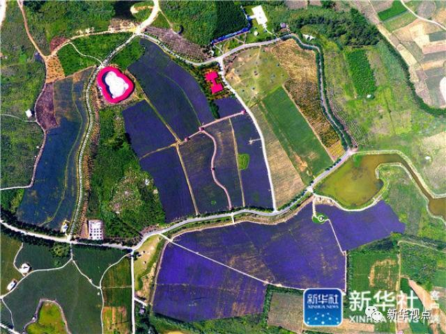 這是5月26日航拍的廣西忻城縣薰衣草莊園。通過農(nóng)業(yè)、文化、旅游的深度融合,從農(nóng)業(yè)供給側(cè)改革上精準(zhǔn)發(fā)力,忻城走出了一條以農(nóng)業(yè)產(chǎn)業(yè)創(chuàng)新帶動(dòng)第三產(chǎn)業(yè)發(fā)展的道路。新華社記者 黃孝邦 攝