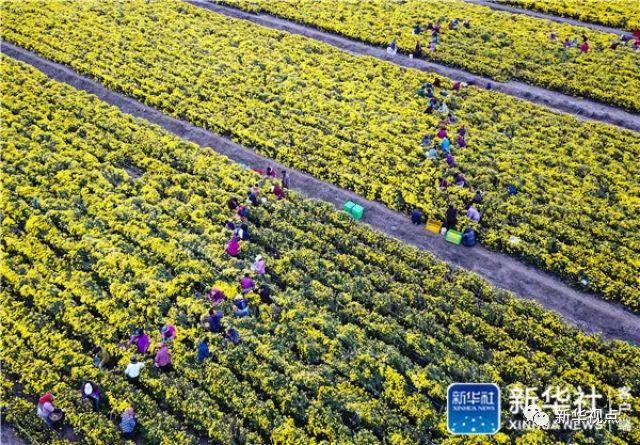 江蘇淮安白馬湖畔,當(dāng)?shù)剞r(nóng)民在采摘菊花(11月12日攝)。據(jù)悉,這千余畝菊花所在的白馬湖中草藥養(yǎng)生產(chǎn)業(yè)園,是淮安目前最大的菊花種植基地,也是當(dāng)?shù)卣Υ蛟斓募ɑ芊N植、藥材加工、旅游觀光等功能于一體的現(xiàn)代農(nóng)業(yè)科技園區(qū)。新華社記者 李響 攝
