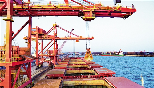 一艘輪船靠泊在秦皇島港礦石碼頭卸載。記者從河北省交通運輸廳港航管理局獲悉,2017年該省秦皇島港、唐山港和黃驊港三大港口共完成貨物吞吐量達10.9億噸,比上年增長1.4億噸,創(chuàng)歷史新高。 新華社記者 楊世堯 攝