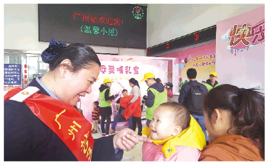 對(duì)于正在廣州站“溫馨小屋”里候車(chē)的重慶姑娘小王來(lái)說(shuō),即將踏上的歸家之路是甜蜜的。與丈夫一起在廣州打工的她,已經(jīng)一年多沒(méi)回家了。她懷里抱著的胖娃娃睡得香甜,腮幫子鼓鼓囊囊,甚是可愛(ài)。