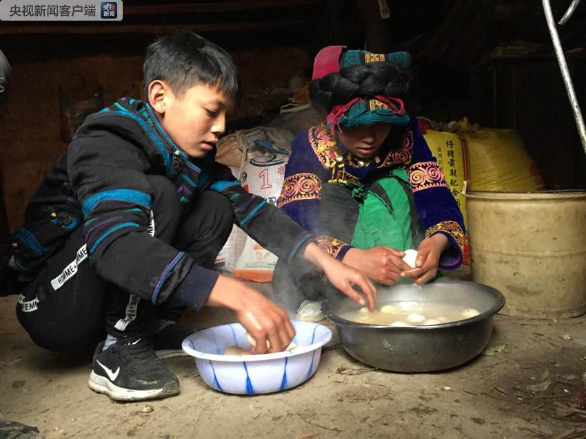 為了這次相聚,里呷早早就起床,在屋角的土豆堆里精挑細(xì)選,土豆是自家地里刨出來(lái)的,是里呷一家的日常主食。里呷記得去年家訪(fǎng)時(shí)列車(chē)的叔叔阿姨說(shuō)起這里的土豆軟糯香甜口感好,就想著烤些土豆讓叔叔阿姨們嘗嘗。他很認(rèn)真地挑選著,形狀不規(guī)則的不要,表皮不光滑的不要,不漂亮的不要,有黑斑的不要,要長(zhǎng)綠芽的不要……再三甄選對(duì)比,細(xì)致清洗。姐姐呷呷在火塘里上生起了火,架上鐵鍋,正在咕嘟嘟的煮著雞蛋,白色的雞蛋在鍋里翻滾。