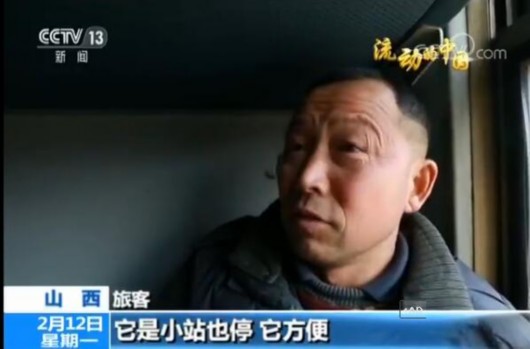 旅客:它是小站也停,它方便。坐汽車不方便,坐大車回我們村得40-50元,坐這個(gè)車才幾塊錢,就到了我們東河站了,走上三里地就回去了。