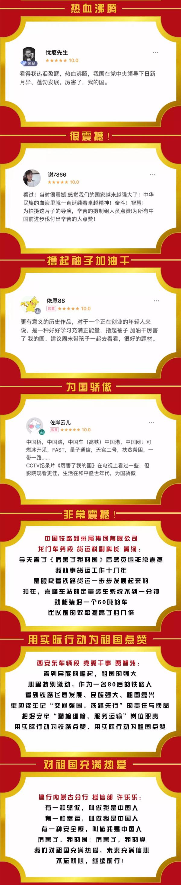 經(jīng)濟(jì)、政治、社會、文化、生態(tài)……《厲害了,我的國》以習(xí)近平新時代中國特色社會主義思想為指引,全面展示了黨的十八大以來在創(chuàng)新、協(xié)調(diào)、綠色、開放、共享的新發(fā)展理念下中國取得的歷史性成就、歷史性變革,廣泛激發(fā)觀眾的共鳴與熱議!