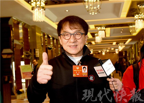 3月4日,在上午的小組會(huì)議結(jié)束后,全國(guó)政協(xié)委員成龍匆匆前往另一個(gè)會(huì)場(chǎng)。但當(dāng)他聽到現(xiàn)代快報(bào)記者的提問時(shí),立即放慢腳步自豪地說:"厲害了,我的國(guó),主題曲是我唱的!"一邊說著,他還豎起大拇指,對(duì)著鏡頭點(diǎn)贊。