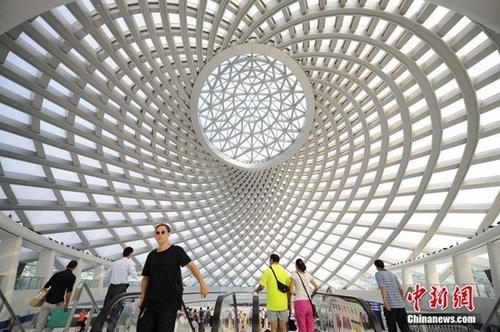 圖為2015年9月20日上午,京津城際鐵路首趟通往于家堡站的列車(chē)平穩(wěn)抵達(dá),標(biāo)志著天津?yàn)I海新區(qū)商務(wù)核心區(qū)于家堡站正式投用。 中新社記者 佟郁 攝