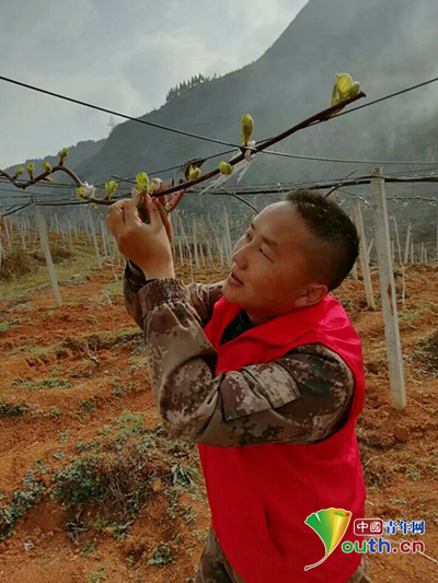 安文忠在果園查看獼猴桃發(fā)芽狀況。本人供圖