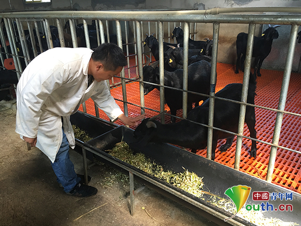 安文忠在集中養(yǎng)羊場(chǎng)查看努比亞山羊進(jìn)食狀況。本人供圖