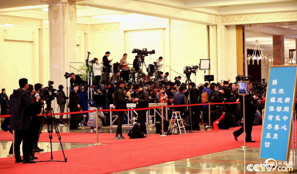 2018年部長通道”開啟前,中外媒體記者提前就位“排兵布陣”。(圖片來源:央視網(wǎng))