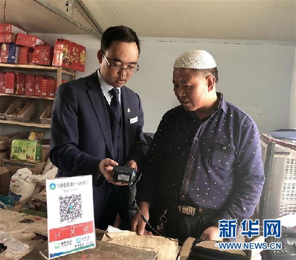 青海省海北藏族自治州門源回族自治縣西沙河村村民前往該村的惠農(nóng)金融服務(wù)點(diǎn)辦理業(yè)務(wù)(5月3日攝)。