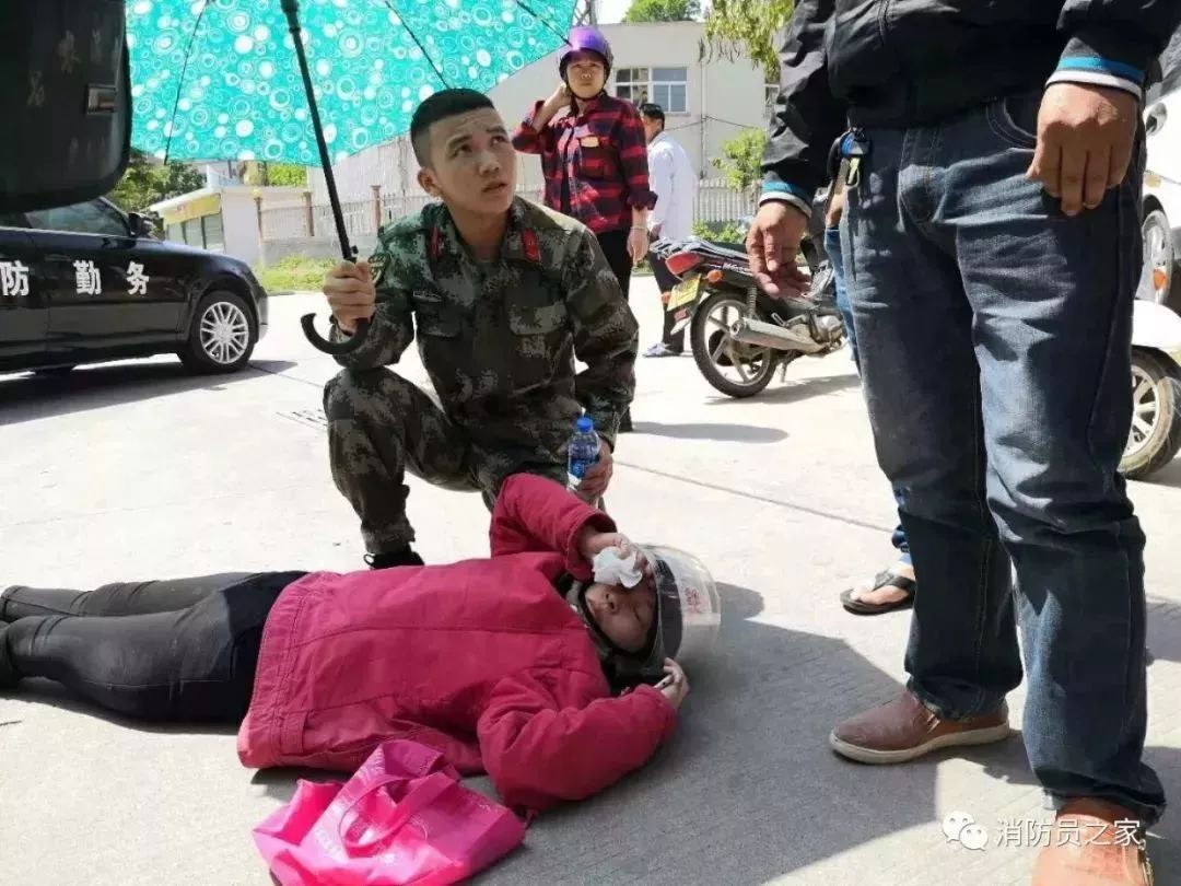 4月8日,福建省漳州市長(zhǎng)泰縣順祥路口一面包車與一電動(dòng)車發(fā)生碰撞,導(dǎo)致騎電動(dòng)車的女子摔倒在地。這一幕,恰好被公差勤務(wù)途中的長(zhǎng)泰消防大隊(duì)消防員陳凱和賈專益看到,二人立即上前了解情況。迅速將電動(dòng)車從該女子身上挪開,推到旁邊空地。