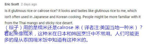 還有許多外國美食愛好者甚至想親自嘗試包粽子。下面這位美食達人在觀看了YouTube上教授如何包粽子的視頻后,估計是想一試身手,但有些細節(jié)沒搞明白,于是又展開了追問。