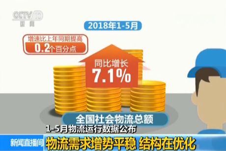 央視網(wǎng)消息:中國(guó)物流與采購(gòu)聯(lián)合會(huì)今天(28日)公布了今年前五個(gè)月社會(huì)物流運(yùn)行數(shù)據(jù)。1-5月物流需求保持平穩(wěn)增長(zhǎng),結(jié)構(gòu)進(jìn)一步優(yōu)化,物流行業(yè)發(fā)展勢(shì)頭良好。