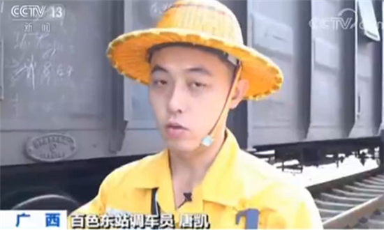 百色東站調(diào)車員唐凱:我們的工作就是,不同的貨物有不同的去向,所以我們要把它們拆分重組,放到它們要去的地方。