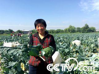在臨夏回族自治州臨夏縣,56歲的宗月兒(音)將土地流轉(zhuǎn)給公司,并在企業(yè)打工,當(dāng)天,她正在蔬菜基地采摘西藍(lán)花,每天能賺65元。記者 王小英 圖片來源:央視網(wǎng)