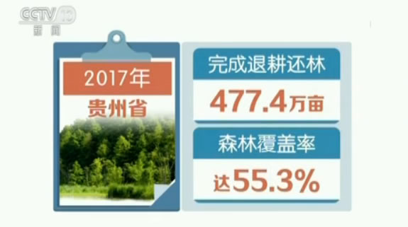 2017年,貴州省綠色經濟占生產總值比重達37%,完成退耕還林477.4萬畝,森林覆蓋率達55.3%。