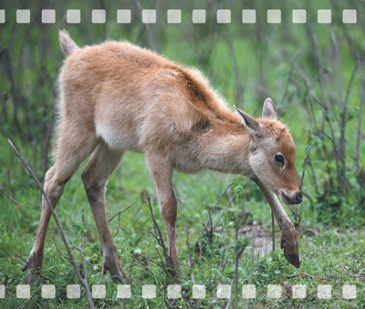 洞庭湖濕地生態(tài)環(huán)境不斷改善,目前洞庭湖的自然野化麋鹿已達140多頭(5月23日攝)。新華社記者 李 尕攝