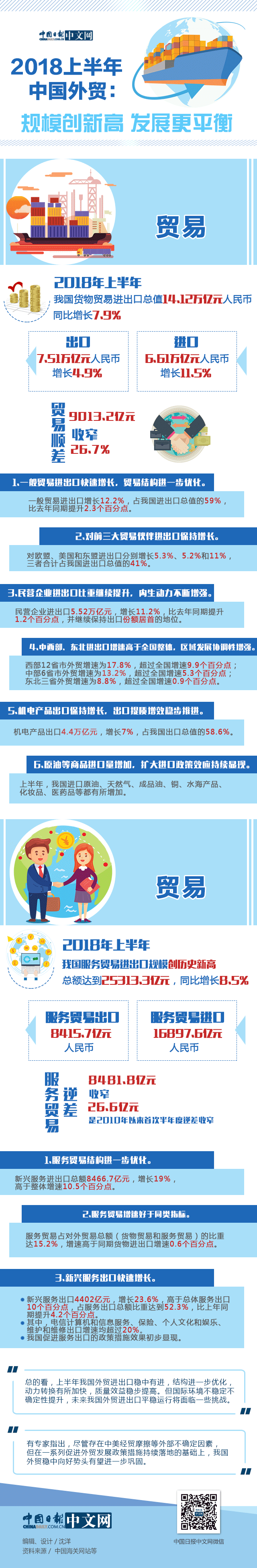 圖解|2018上半年中國(guó)外貿(mào):規(guī)模創(chuàng)新高 發(fā)展更平衡