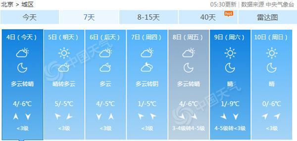 6到7日(初二和初三),北京的天氣以多云到陰為主,其中,7日夜間,西部、北部山區(qū)將有小雪,并且最高氣溫將降至1°C。