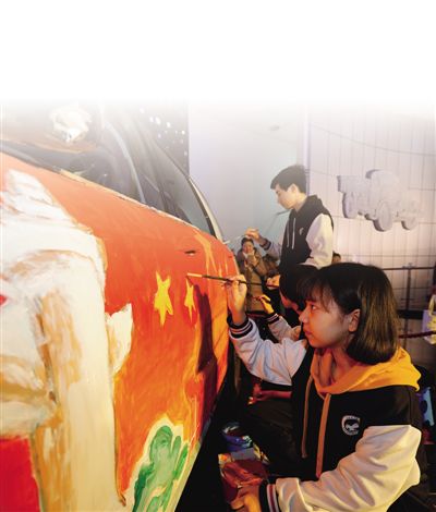 學生在北京汽車博物館。