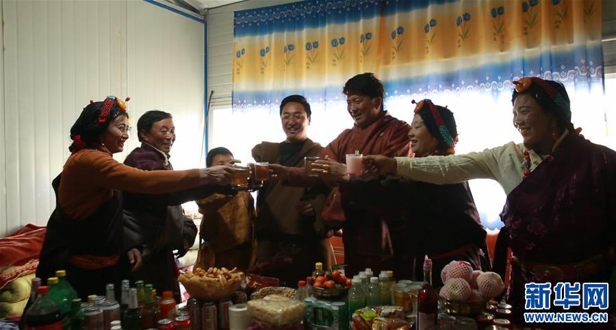 澤扎一家同朋友們舉杯共迎新年(1月31日攝)。 新華社發(fā)(陳皎巴特 攝)