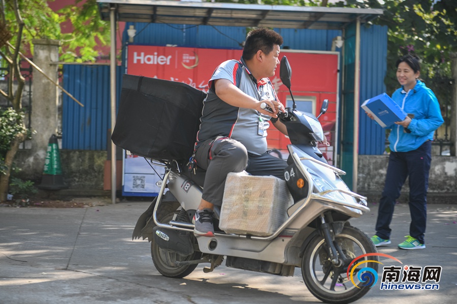 2019年2月8日,?谑薪鹦锹罚爝f員給顧客送物品。海報全媒體中心記者 袁琛 攝