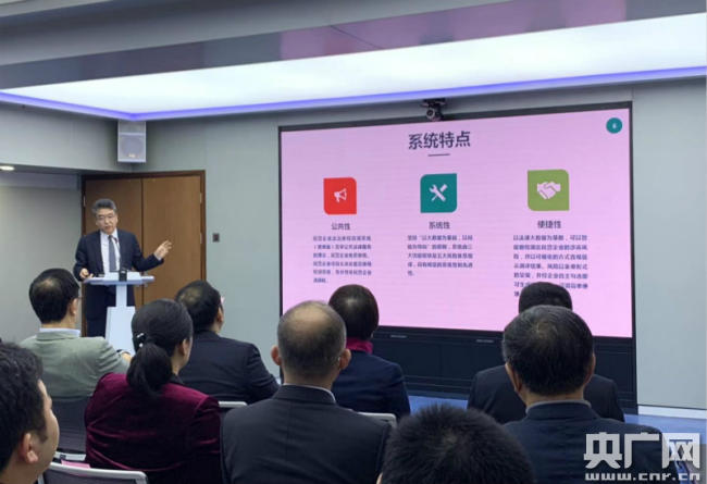 深圳市司法局局長蔣溪林介紹“民營企業(yè)法治體檢自測系統(tǒng)”。(央廣網(wǎng)記者 黃倩 攝)