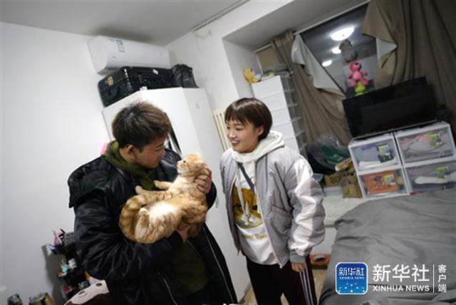 ↑2月21日,張世玉(右)與呂新在租住的位于北京東五環(huán)外的房子里。