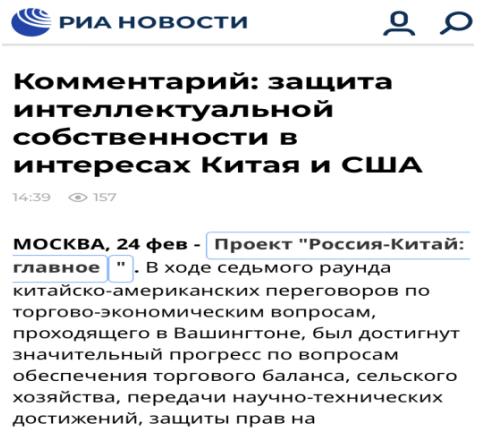 央視網(wǎng)消息:中央廣播電視總臺“國際銳評”2月24日刊播題為《加強知識產(chǎn)權保護 中美有三大“利益交匯點”》的文章。眾多境外媒體和網(wǎng)站轉(zhuǎn)發(fā)。