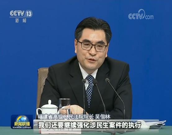農(nóng)民工討薪等涉民生執(zhí)行效果如何,福建省高級人民法院院長吳偕林表示,民生就是民心,我們還要繼續(xù)強(qiáng)化涉民生案件的執(zhí)行,讓更多的真金白銀落入人民群眾的口袋。