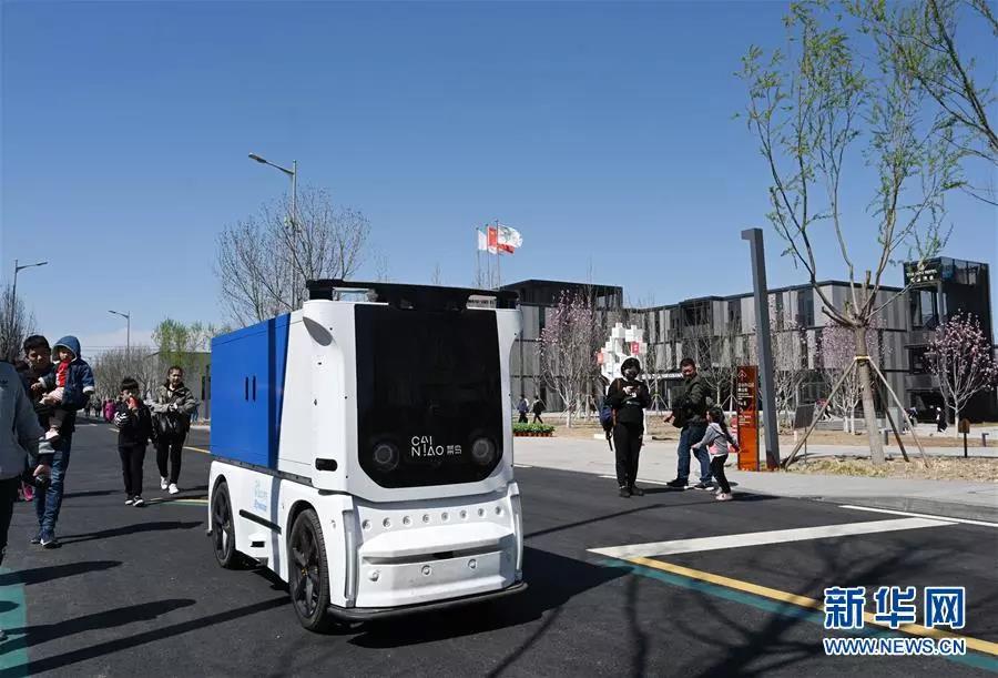 快遞無(wú)人車(chē)在雄安市民服務(wù)中心內(nèi)行駛。新華社記者金良快 攝