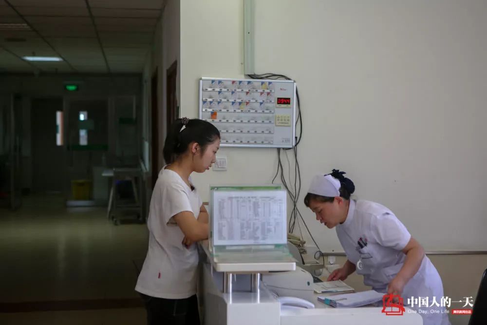 ↑趙思琦在護(hù)士臺(tái)前詢問母親住院開銷的情況。