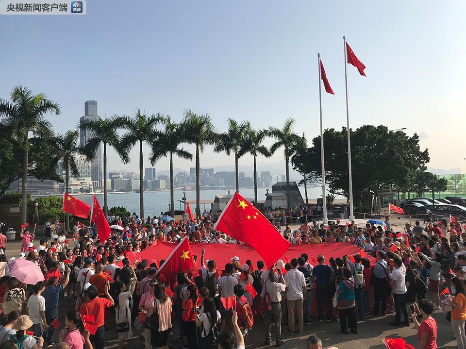 本次升旗儀式由香港升旗隊(duì)總會(huì)支持,現(xiàn)場(chǎng)有逾千名普通市民和愛國(guó)愛港社團(tuán)自發(fā)前往觀禮。