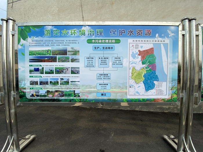 圖為長(zhǎng)沙市望城區(qū)高塘嶺街道湘江村水環(huán)境治理宣傳板。新華網(wǎng) 汪亞攝