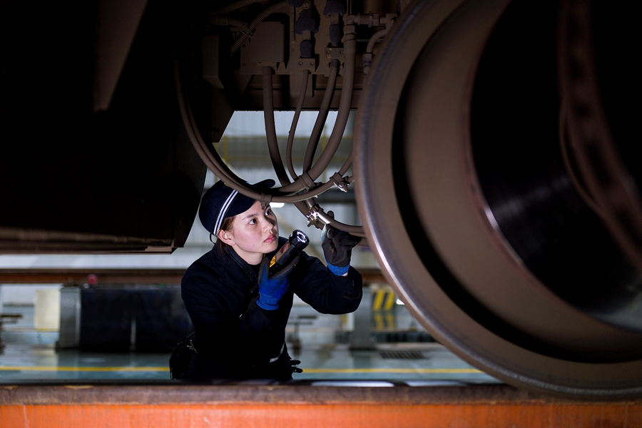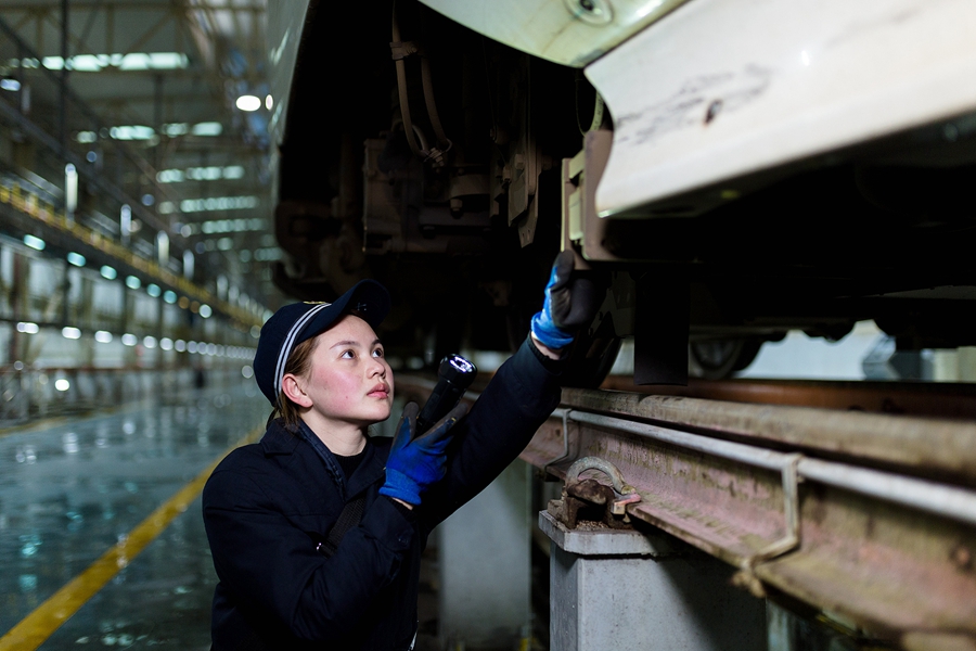 她們的作業(yè)分為有電作業(yè)和無(wú)電作業(yè)兩種狀態(tài)。有電作業(yè)主要是對(duì)高鐵車載設(shè)備進(jìn)行試驗(yàn),檢查機(jī)柜內(nèi)設(shè)備顯示燈是否正常,機(jī)柜是否有異物、異味等;無(wú)電作業(yè)主要是對(duì)高鐵動(dòng)車組車底的速度傳感器、應(yīng)答器、軌道信息接收天線線圈進(jìn)行防松脫檢查等。