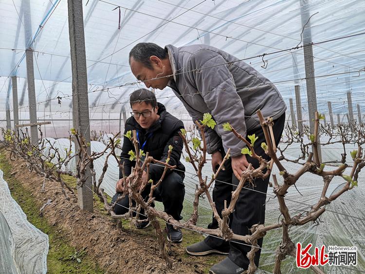 “別著急,一會兒就到!”趙見行嘴里塞著半拉饅頭,邊穿棉襖邊不停地答應著。約半小時后,趙見行已經(jīng)鉆進了饒陽鎮(zhèn)北關(guān)村葡萄種植戶王占嶺的葡萄棚。