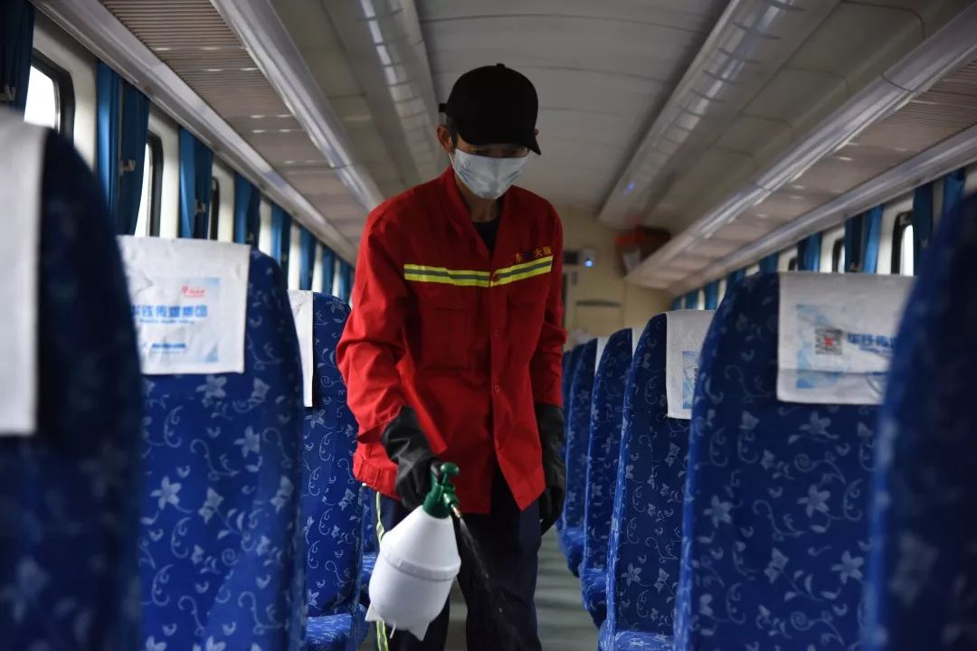 自疫情蔓延以來,廣州局集團公司要求每趟旅客列車上線運行前,必須進行全面消毒和保潔。按照這一要求,廣州客運段加強了列車消毒保潔力度。
