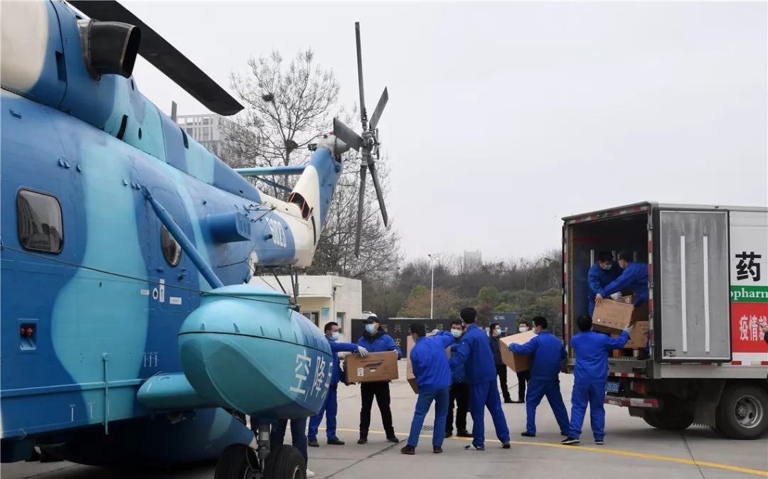 2月12日,應湖北省疫情防控指揮部請求,中部戰(zhàn)區(qū)緊急調(diào)派由航空工業(yè)研制生產(chǎn)在駐鄂空降兵某空中突擊旅直升機團服役的兩架國產(chǎn)直8大型運輸直升機,由武漢市向襄陽、宜昌地區(qū)轉(zhuǎn)運口罩、防護服、手套、藥品等600件共計4噸防疫醫(yī)療急需藥品和緊缺物資。